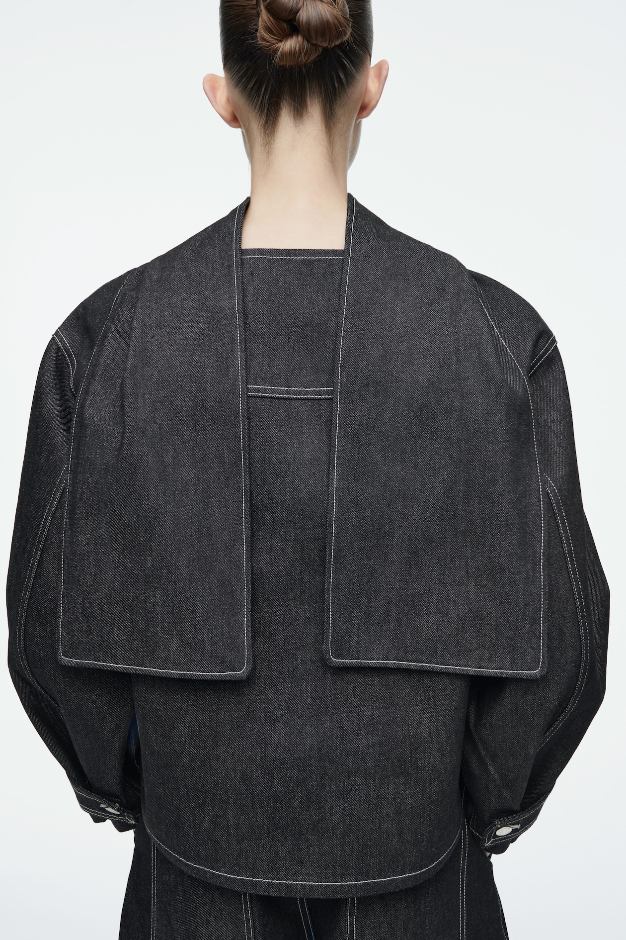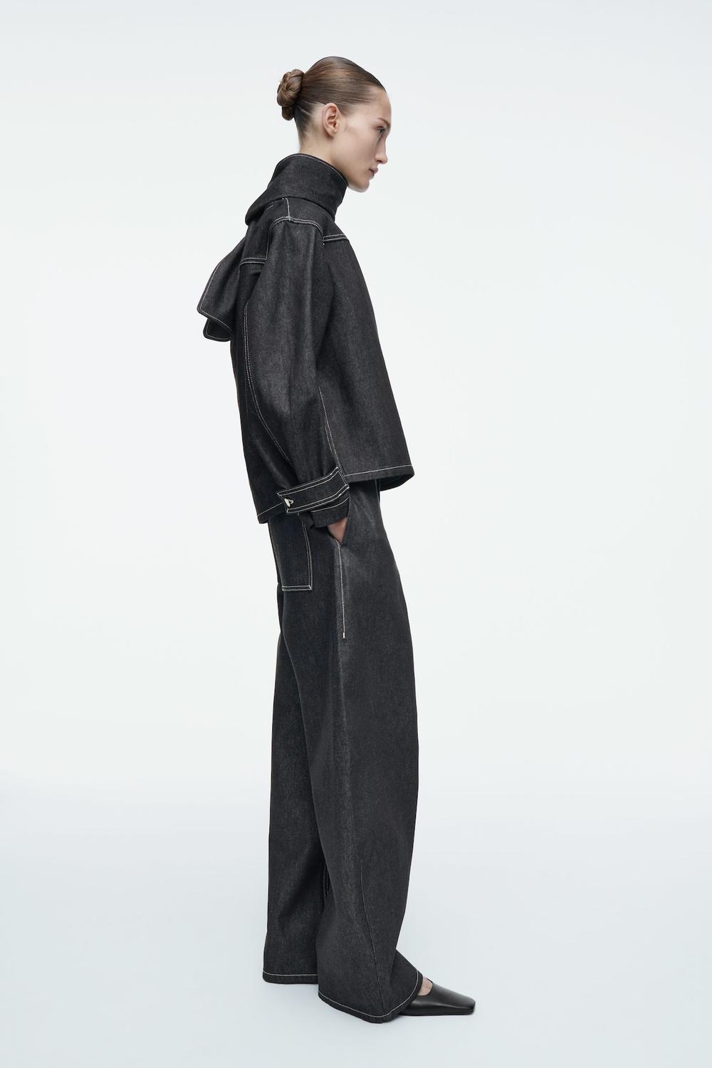 Представляем капсульную коллекцию COS REMADE, состоящую из пяти предметов женского гардероба, изготовленных на 20% из переработанного хлопка COS, что дает им вторую жизнь. Дизайн открытой джинсовой блузки дополнен воротником-шалью и привлекающими внимание деталями на манжетах. Мы рекомендуем создать единый стиль с помощью