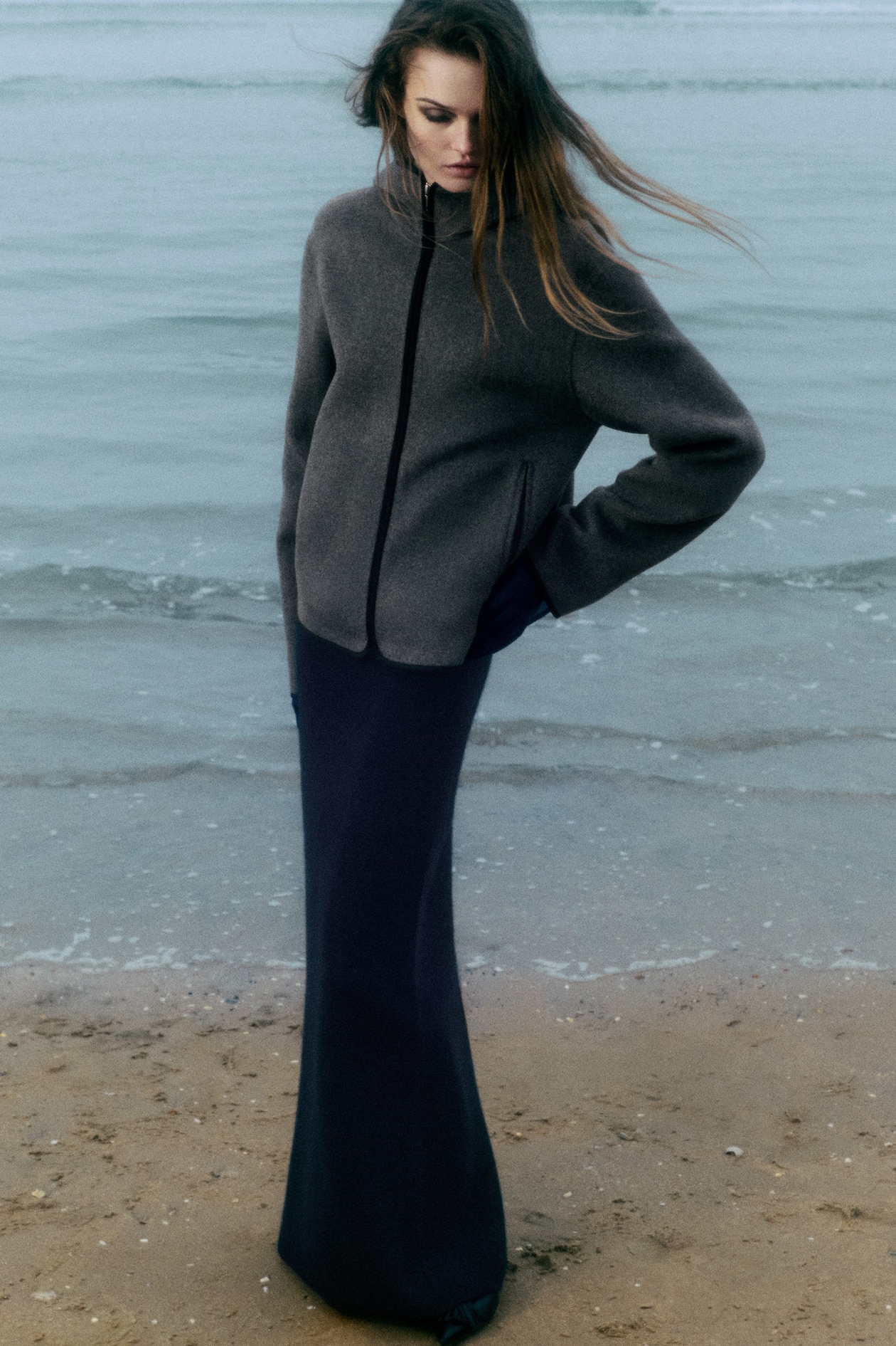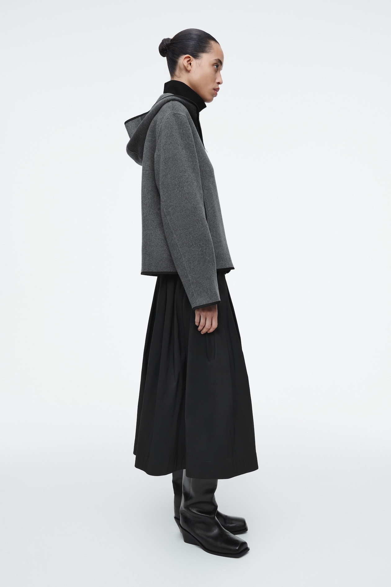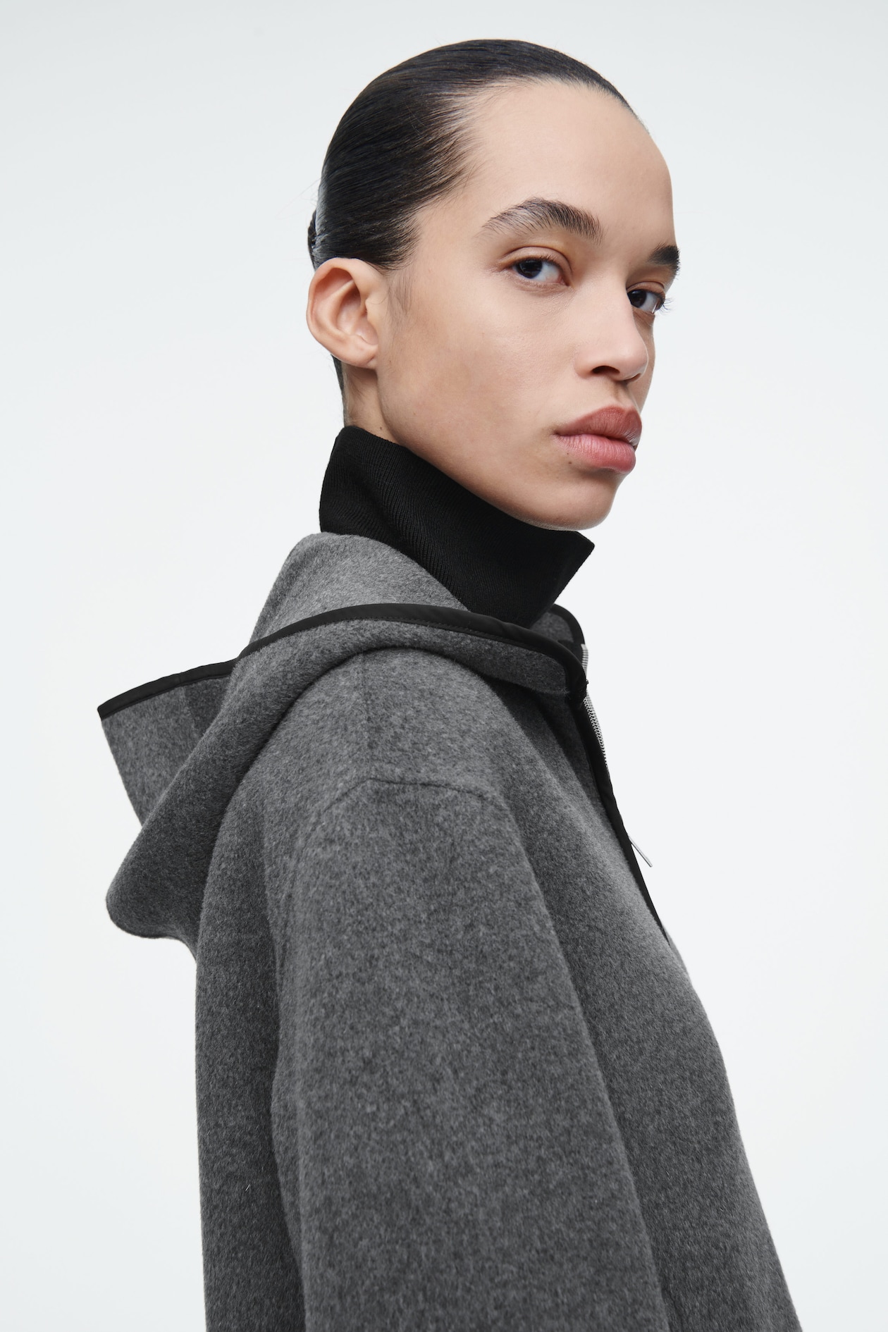 Эта куртка — изысканный фасон, идеально подходящий для переходных месяцев. Изделие изготовлено из двусторонней смеси шерсти и лиоцелла TENCEL в приглушенном сером цвете. Куртка имеет проклеенную, слегка контрастирующую нейлоновую отделку на капюшоне, молнии и кромках рукавов, а также прорезные карманы, в которых можно легко согреть руки.