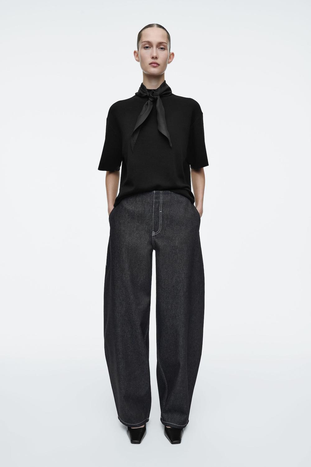 Представляем капсульную коллекцию COS REMADE, состоящую из пяти предметов женского гардероба, изготовленных на 20% из переработанного хлопка COS, что дает им вторую жизнь. Эти джинсы цвета индиго с заметным узором обязаны своим пышным кроем нашей современной интерпретации практичного стиля. Модель выходит за рамки обычных условностей, поскольку в ней нет шлевок для ремня, что придает ей изысканный характер; Кроме того, характерным элементом коллекции является декоративная белая строчка. Мы рекомендуем создать единый стиль с помощью подходящей блузки. Широкие штанины бочкообразной формы, слегка сужающиеся в районе щиколотки; свободный покрой; высокая талия; Длина до щиколотки