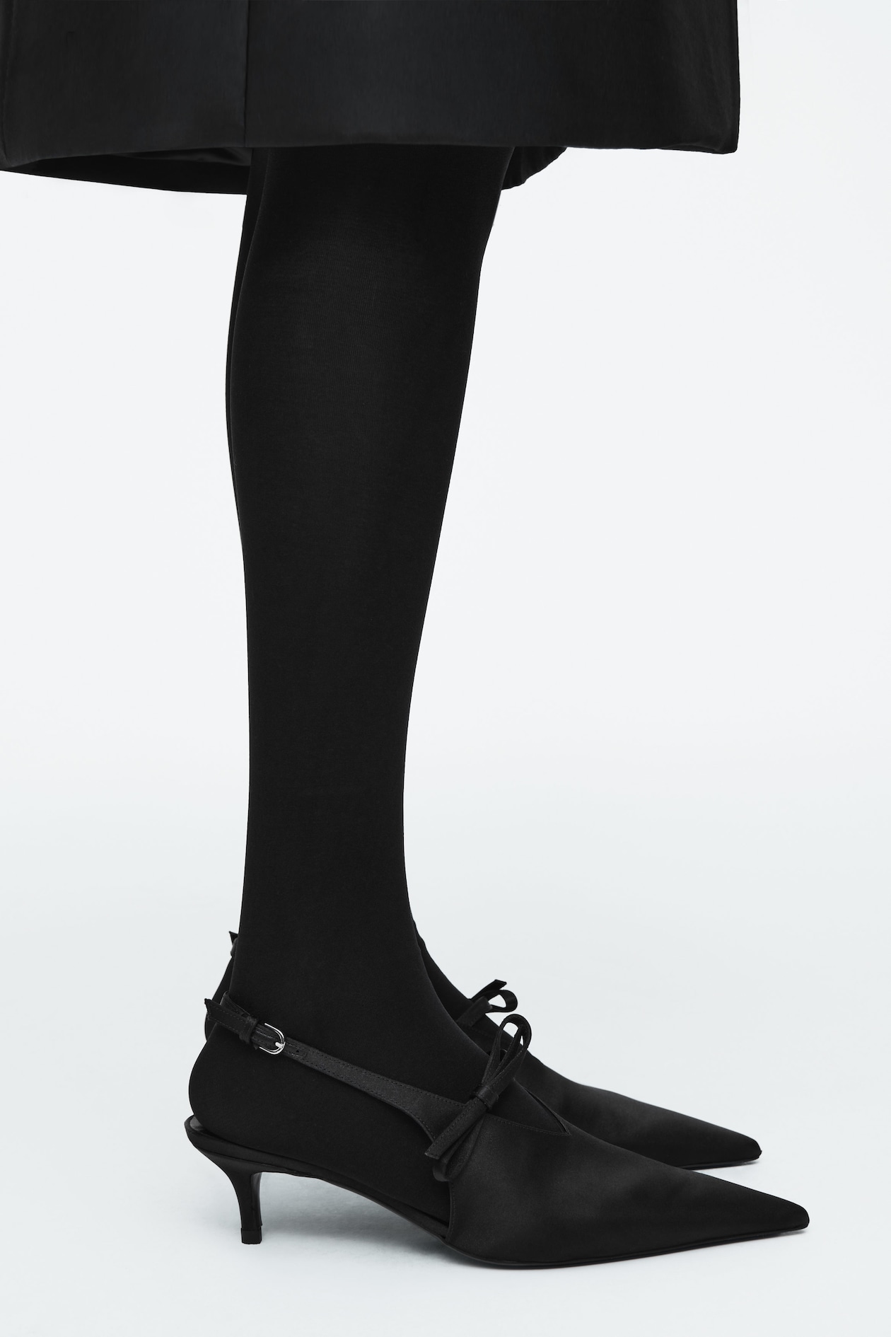 Атласные туфли-лодочки с открытым каблуком и бантами COS, черный