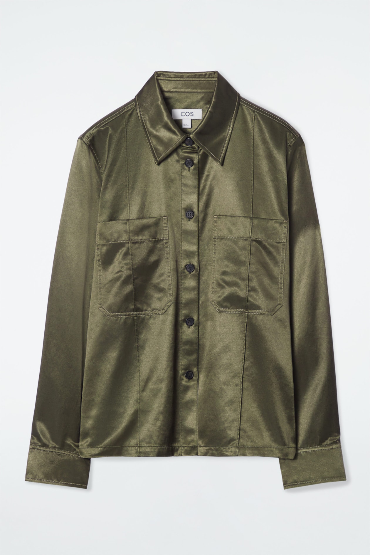 Атласная рубашка в стиле utility-regular fit COS, хаки 7 046₽