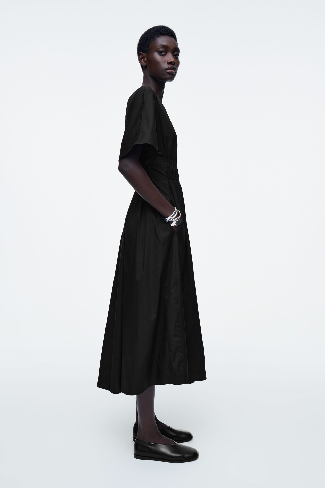 Платье миди с вырезом на спине и рюшами COS, черный 8 734₽