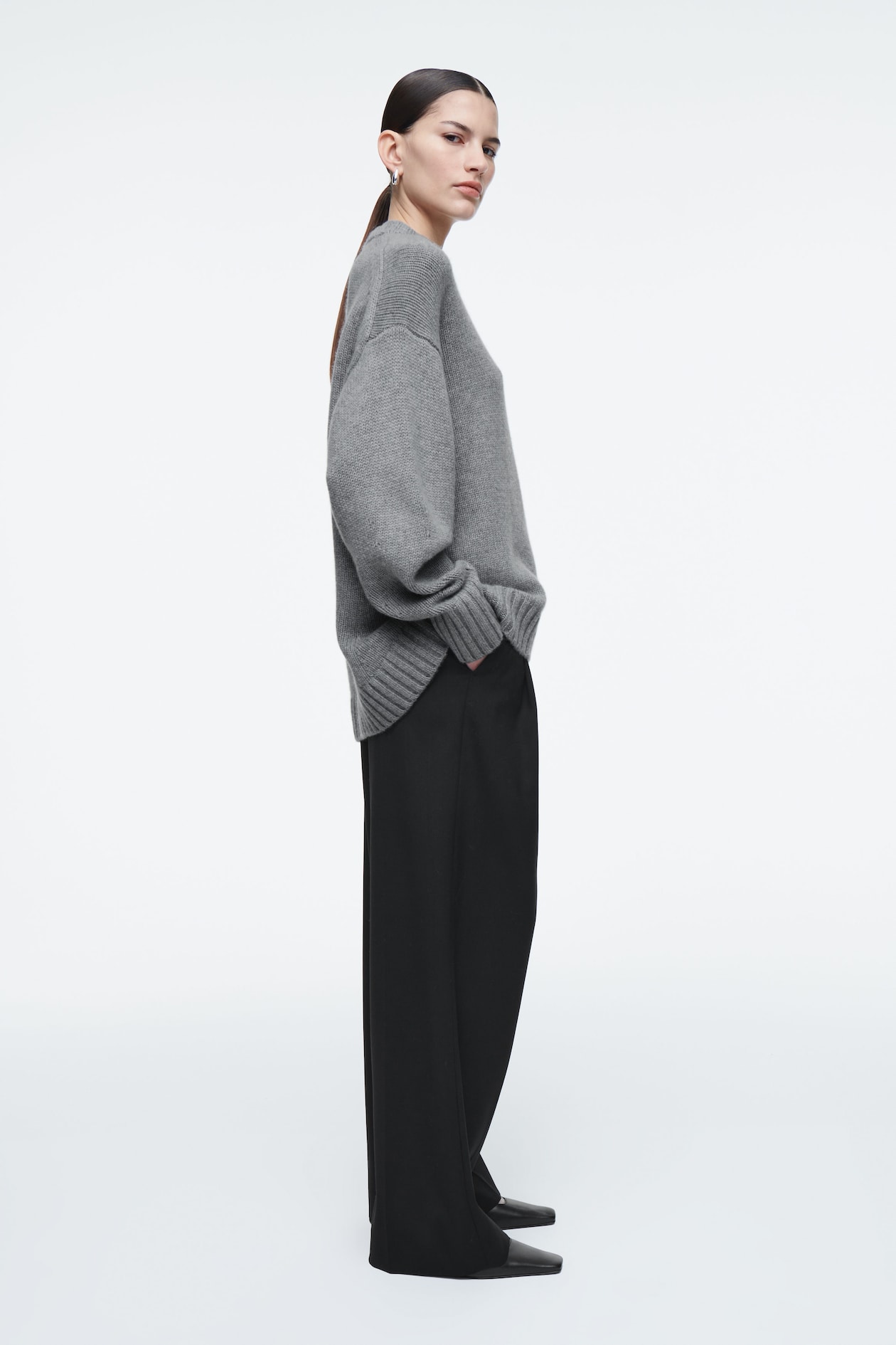 Трикотаж COS создан, чтобы выдержать испытание временем и прослужить вам долгие годы. В комплект входит этот свитер с круглым вырезом, изготовленный из плотного, высококачественного кашемира, сертифицированного GCS. Закругленные рукава придают изделию форму кокона, а ребристые отделки гарантируют, что модель не деформируется со временем. Свободный крой позволяет легко надевать его поверх других предметов одежды.