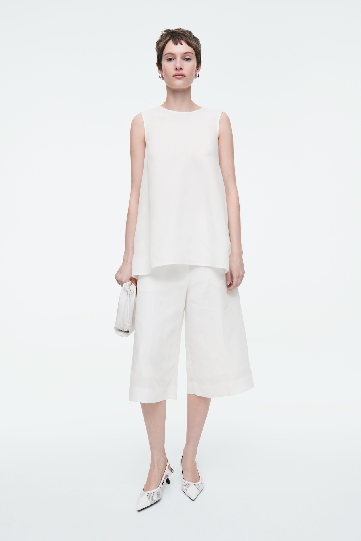 Наша коллекция весна-лето 2024 полна современных моделей, таких как этот топ без рукавов — классический спереди и с V-образным вырезом сзади, где материал собран и завернут, что придает ему необычную форму. Этот топ, изготовленный из легкой смеси лиоцелла TENCEL и льна, идеально подходит для лета. Носите его с подходящими брюками или шортами и добавьте жилет. Свободный крой Круглый вырез горловины TENCEL является торговой маркой Lenzing AG. Лиоцелл TENCEL производится из возобновляемых источников древесины с использованием процесса, который позволяет перерабатывать 99% всех химикатов и воды