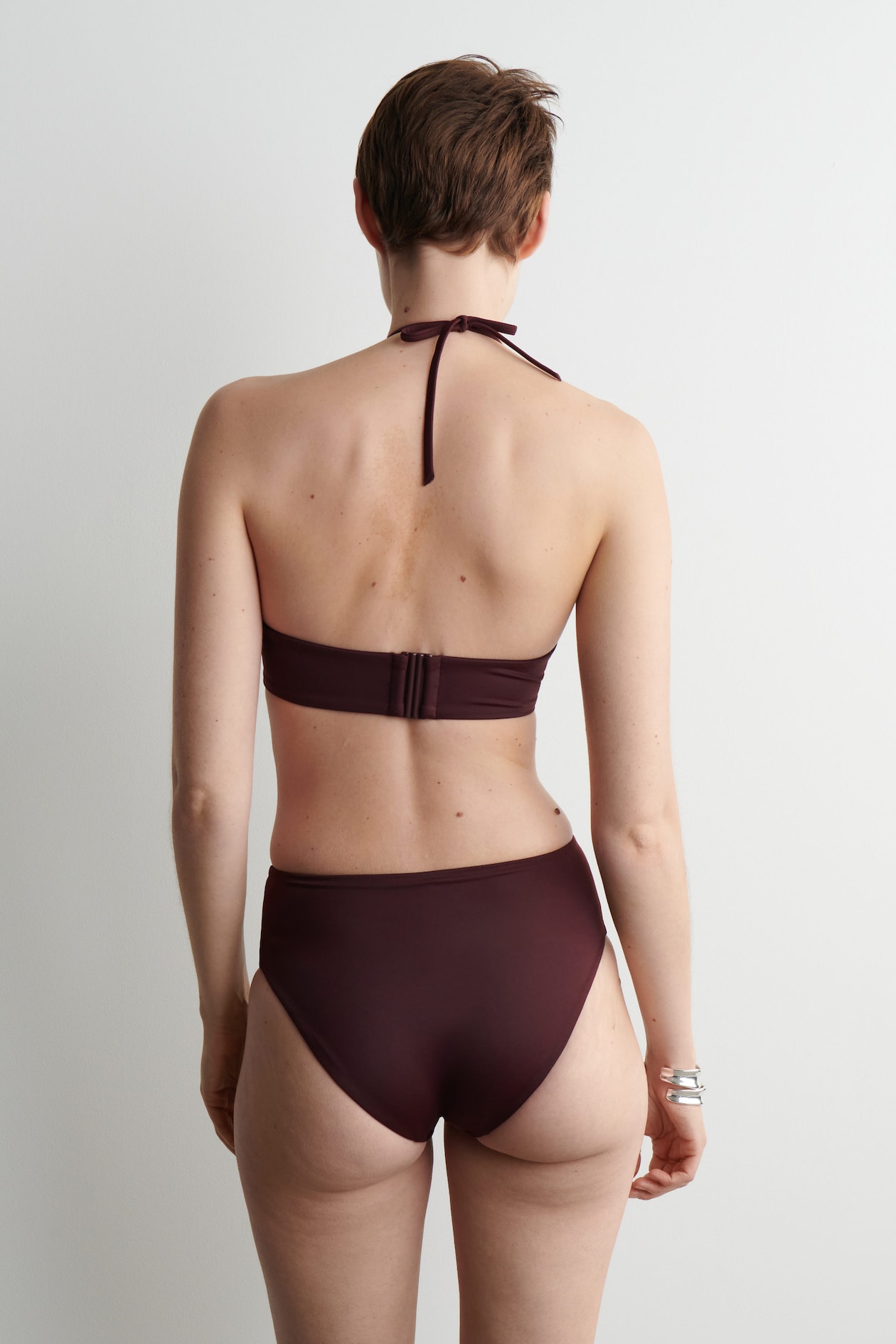 В этом сезоне основу коллекции купальников COS составляют идеально скроенные конструкции. Представляем классические плавки бикини с высокой талией бордового цвета. Мы рекомендуем создать костюм-двойку с