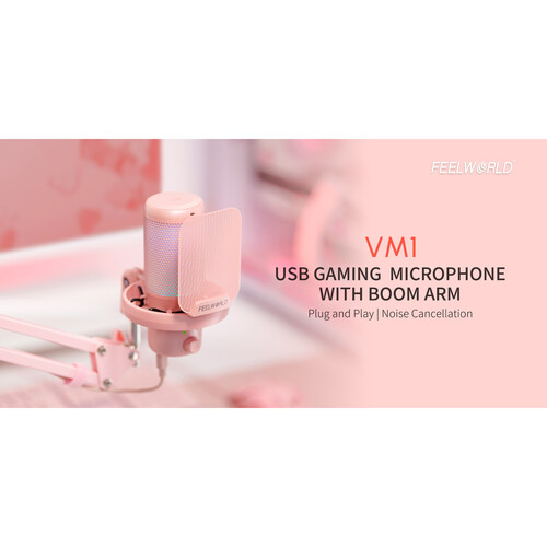 Игровой микрофон FeelWorld VM1-AS USB-C со штангой (розовый)