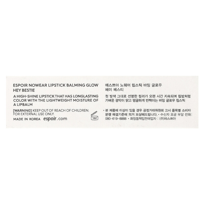 Espoir, Nowear, губная помада Balming Glow, PK004 Hey Bestie`` 3 г