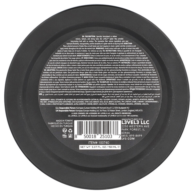 Паутинный воск L3VEL3 , специально разработанный для придания объема, текстуры и сильной фиксации, обеспечивает длительную фиксацию без остатков. Инновационные ингредиенты с волокнистой текстурой придают вашей прическе гибкость, послушность и стойкость, как паутинку, на весь день.