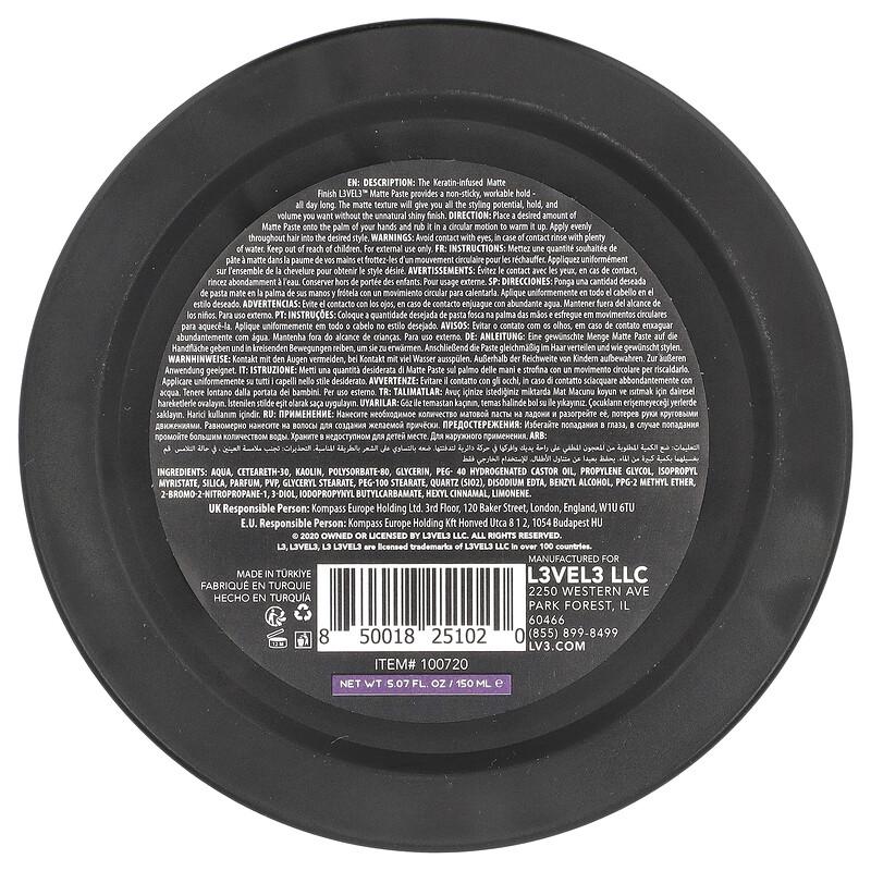 Паста Matte Finish L3VEL3 с кератином обеспечивает нелипкую стойкость на протяжении всего дня. Матовая текстура придаст волосам необходимый объем, стойкость и объем без неестественного блеска.