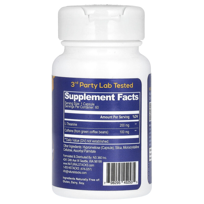 Способствует долгосрочной поддержке энергии и внимания без дрожи, беспокойства и упадка сил.