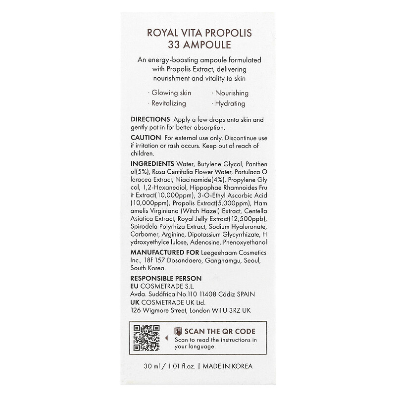 Энергетическая ампула с экстрактом прополиса обеспечивает питание и жизненную силу для кожи.
