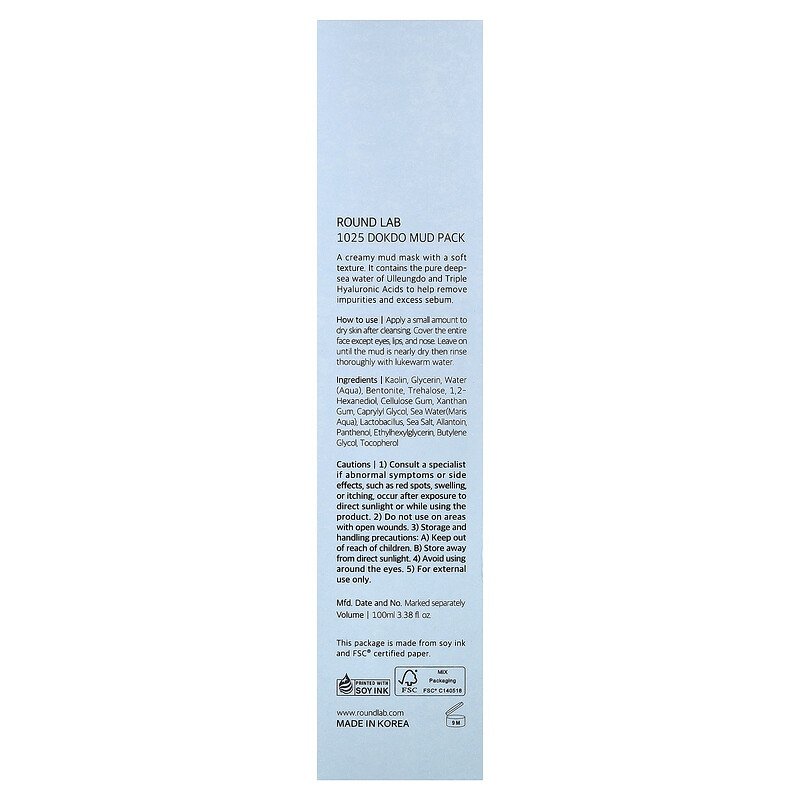 Round Lab, 1025 Dokdo грязевая маска, 100 мл (3,38 жидк. унц.)