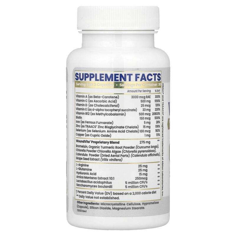 WoundVite создан клиническими фармацевтами и врачами для оптимизации времени заживления и восстановления, добавляя ключевые питательные вещества, необходимые для ускорения процесса заживления. Он содержит 21 питательный ингредиент, подтвержденный исследованиями, который способствует заживлению ран, уменьшению рубцов и восстановлению тканей.