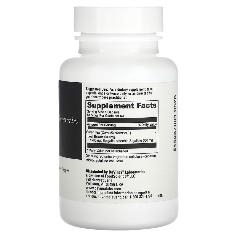 Зеленый чай-70 содержит эпигаллокатехин-3-галлат (EGCG), важное питательное вещество, поддерживающее работу сердечно-сосудистой системы, суставов, кишечника и печени. Это мощный антиоксидант и метаболизатор жиров. Стандартизирован для содержания 350 мг (70%) ЭГКГ в 1 капсуле.