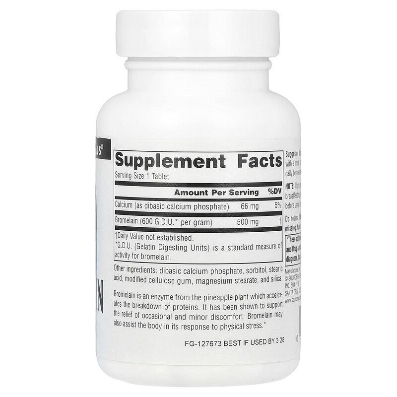 Бромелаин — это фермент из ананаса, которое ускоряет расщепление белков. Доказано, что он помогает облегчить эпизодический и незначительный дискомфорт. Бромелаин также может помочь телу реагировать на физический стресс.
