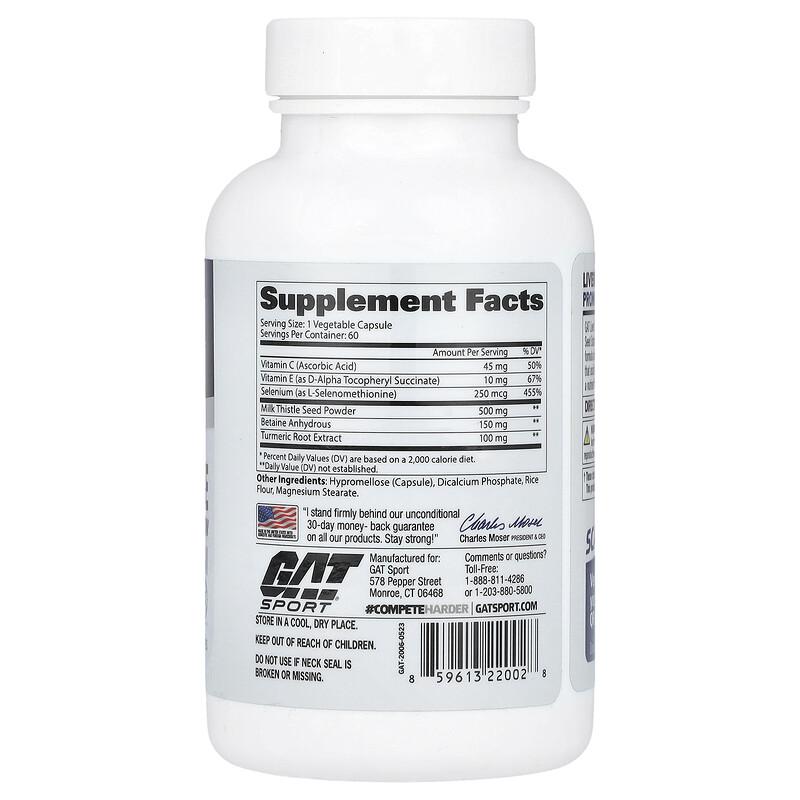 Препарат для очищения печени GAT помогает печени выполнять жизненно необходимую функцию фильтрации. Доказано, что экстракт семян расторопши защищает и укрепляет здоровье печени. Эта формула также содержит витамины C, E и селен — эффективные антиоксиданты, которые помогают снизить окислительный стресс. Содержит безводный бетаин — питательное вещество, которое помогает защитить клетки печени от токсинов.