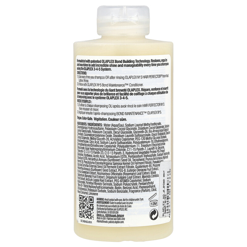 Изготовлено по запатентованной технологии Olaplex Bond. Восстанавливает, восстанавливает и питает, придавая коже невероятный блеск и послушность при каждом использовании шампуня с системой Olaplex 3-4-5.