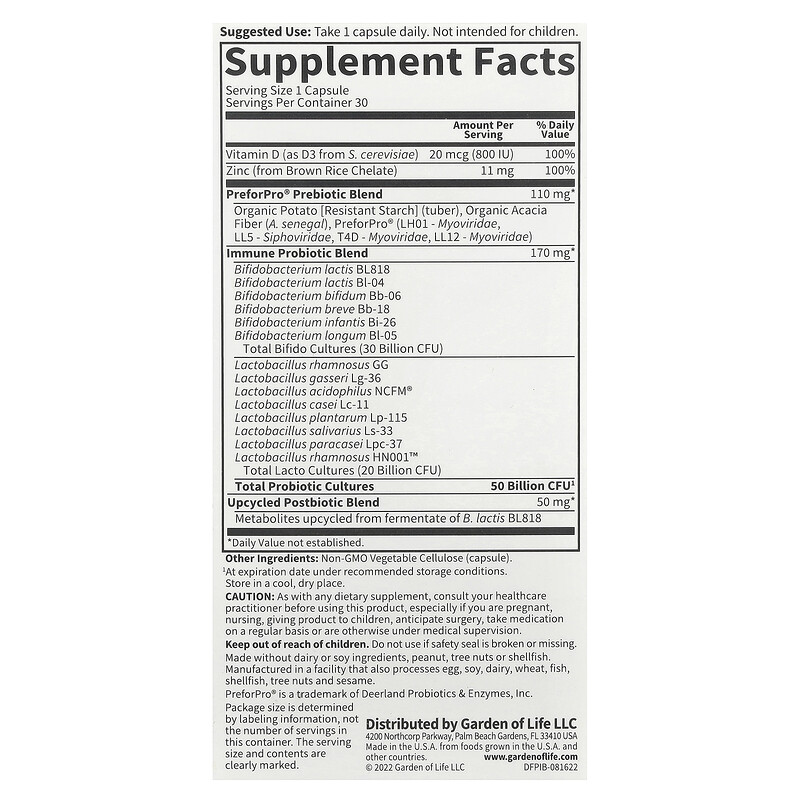 Полная формула пробиотиков с пре-, про и постбиотиками, с цинком и витамином D, обеспечивающими мощную поддержку иммунитета и пищеварения.