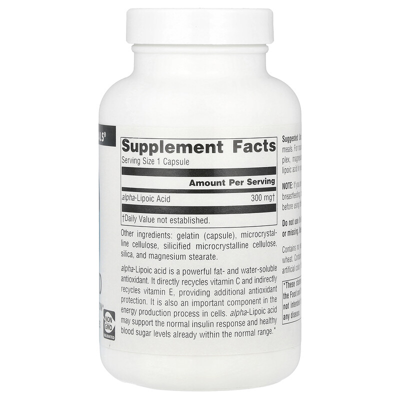 Альфа-липоевая кислота - это мощный жиро- и водорастворимый антиоксидант. Он напрямую перерабатывает витамин C и косвенно перерабатывает витамин E, обеспечивая дополнительную антиоксидантную защиту. Это также важный компонент в процессе производства энергии в клетках. Альфа-липоевая кислота может поддерживать нормальную реакцию на инсулин и нормальный уровень сахара в крови.