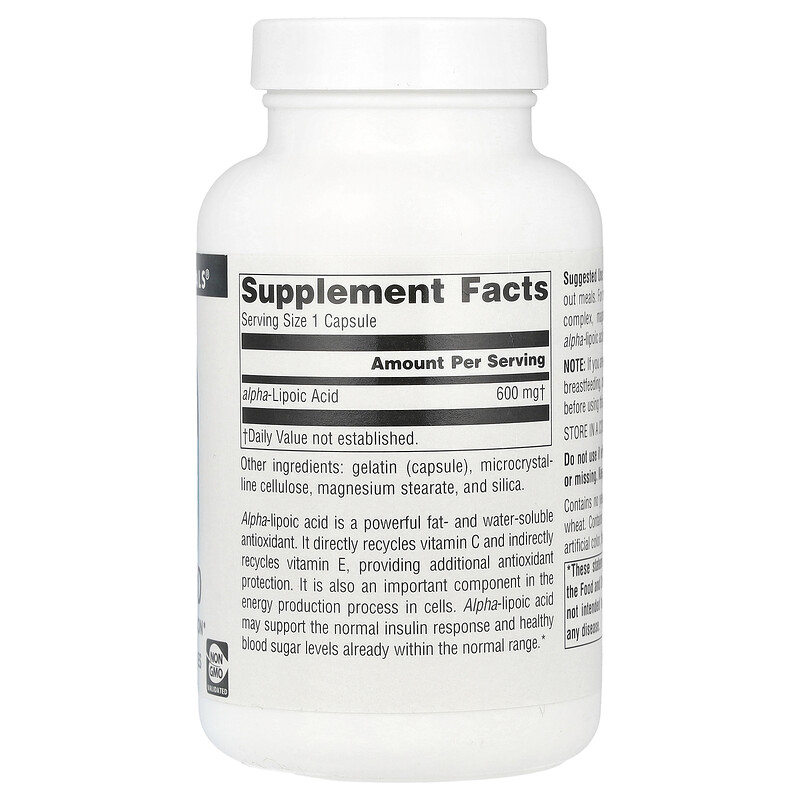 Альфа-липоевая кислота - это мощный жиро- и водорастворимый антиоксидант. Он напрямую перерабатывает витамин C и косвенно перерабатывает витамин E, обеспечивая дополнительную антиоксидантную защиту. Это также важный компонент в процессе производства энергии в клетках. Альфа-липоевая кислота может поддерживать нормальную реакцию на инсулин и нормальный уровень сахара в крови.