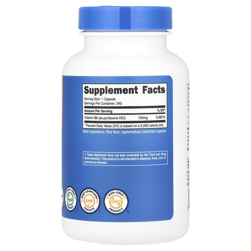 Nutricost, Витамин B6, 100 мг, 240 капсул