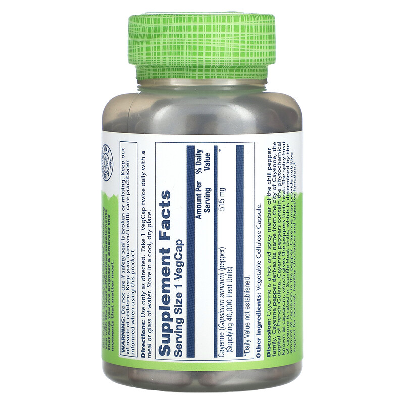 Solaray, True Herbs, кайенский перец, 515 мг, 180 вегетарианских капсул