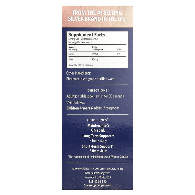 Чистый продукт. Всего 3 ингредиента: 99,999% чистой меди, вода фармацевтической степени чистоты и немного чистого серебра. Упаковано в бутылки из не вымываемого янтарного стекла (не из пластика), чтобы сохранить его таким же чистым и мощным, как в день создания.