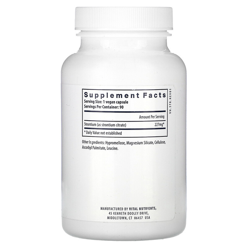 Стронций (цитрат) — это щелочноземельный металл, по структуре очень похожий на кальций и оказывающий такое же действие на организм. 99% стронция сосредоточено в зубах и костях, где он способствует размножению преостеобластных клеток, которые поддерживают здоровье костей. Стронций является отличным дополнением к другим добавкам, способствующим здоровью зубов и костей. Osteo Nutrients или Osteo Nutrients II — это дополнительные формулы, которые усиливают действие цитрата стронция, поскольку стронций наиболее полезен в сочетании с достаточным количеством кальция и витамина D.