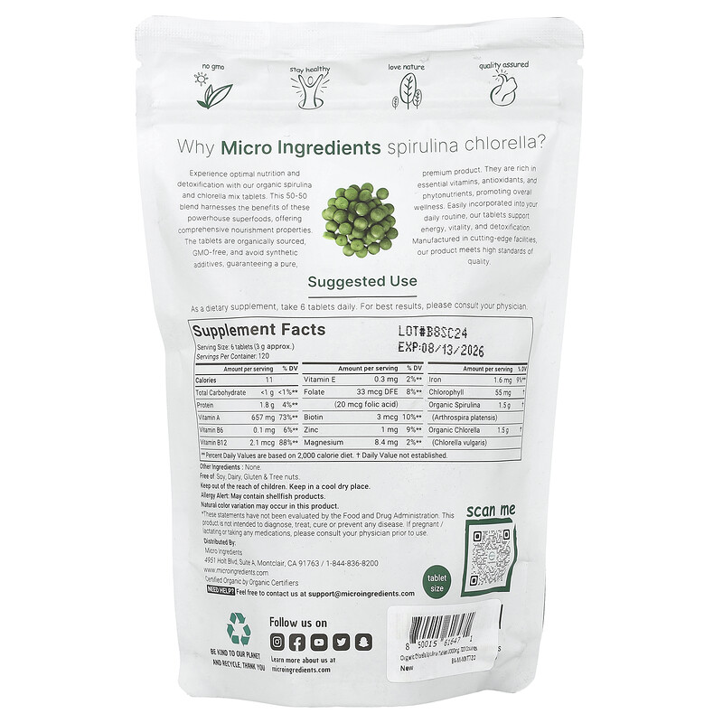 Наслаждайтесь оптимальным питанием и детоксикацией с нашей органической смесью спирулины и хлореллы. Эта смесь 50 на 50 использует преимущества этих суперфудов, предлагая комплексные питательные свойства. Таблетки изготовлены из органических источников, не содержат ГМО и синтетических добавок, что гарантирует чистый продукт премиального качества. Они богаты необходимыми витаминами, антиоксидантами и фитонутриентами, способствующими общему самочувствию. Наши таблетки легко вписываются в ваш распорядок дня и поддерживают энергию, бодрость и детоксикацию. Наша продукция производится на ультрасовременном оборудовании и соответствует высоким стандартам качества.