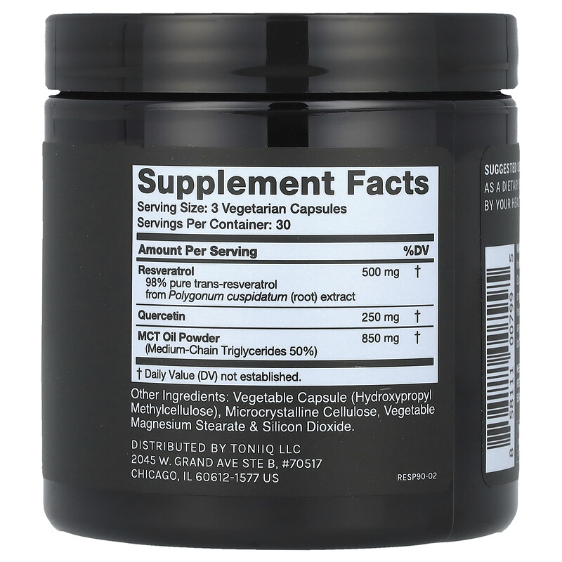 Toniiq, Ресвератрол +, с кверцетином и MCT, 90 капсул