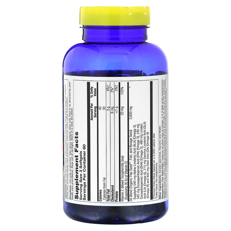 Описание. The Total EFA отличается идеальным соотношением жирных кислот омега-3, 6, 9, полученных из экологически чистых природных территорий. Эта уникально сбалансированная смесь масла бурачника, льняного масла и молекулярно-дистиллированного концентрата чистого рыбьего жира содержит ЭПК и ДГК и предназначена для обеспечения питательной поддержки здоровой кожи, гибкости суставов, здоровья сердца и здоровой функции памяти.