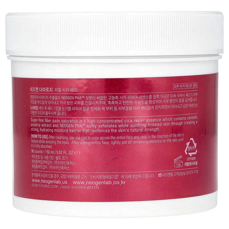 Подушечки из сверхтонкого волокна, пропитанные высококонцентрированной восстанавливающей эссенцией, которая содержит экстракт готу колы (Centella asiatica) и NEOGEN PHA, мягко отшелушивает и успокаивает раздраженную кожу, создавая прочный увлажняющий барьер, укрепляющий естественную силу кожи.