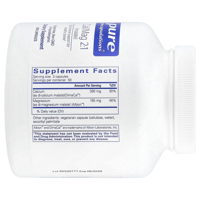 Pure Encapsulations, Cal / Mag 2: 1 (малат), 180 капсул