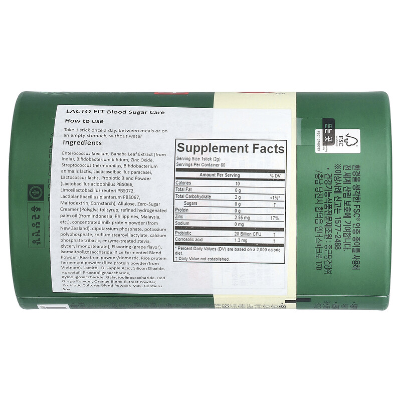Lactofit, Пробиотик, уровень сахара в крови, 60 стиков (2 г) каждый