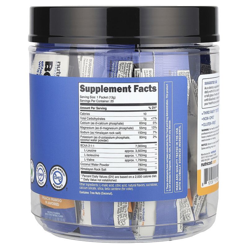 Nutricost, Performance, BCAA +, персик и манго, 20 пакетиков по 13 г (0,5 унции) 3 774₽