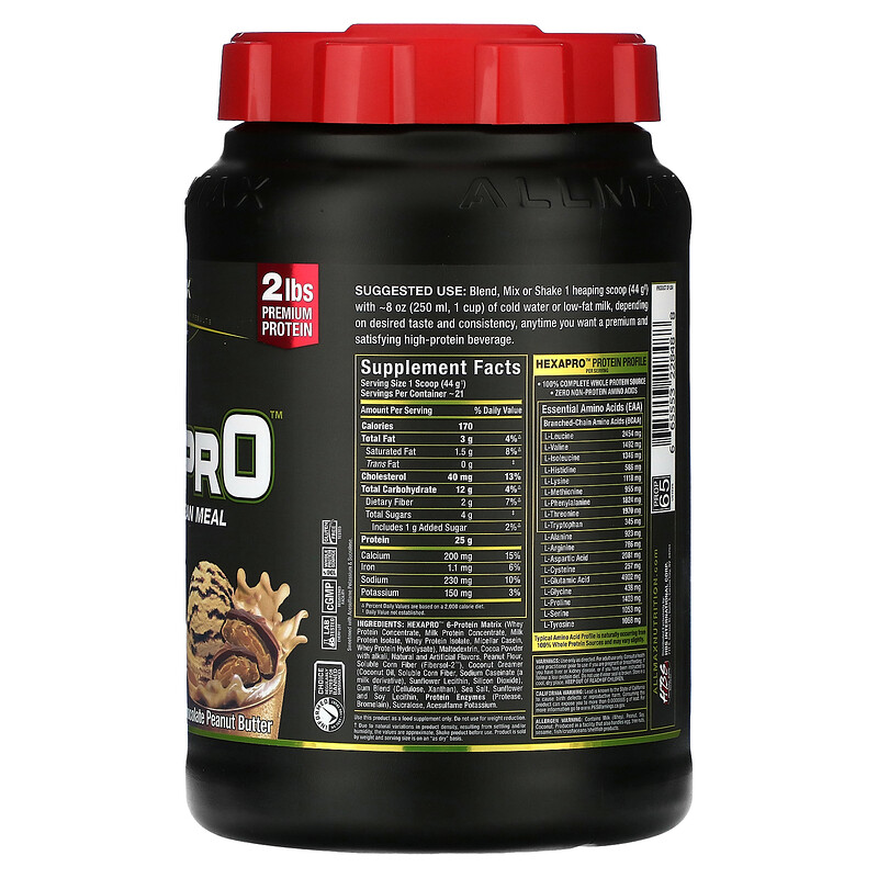 ALLMAX, Hexapro, постная еда с высоким содержанием белка, шоколад и арахисовая паста, 907 г (2 фунта)