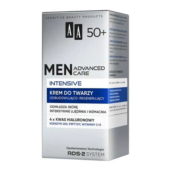 Крем против морщин AA Advanced Care Intensive 50+ точно отвечает потребностям кожи мужчин старше 50 лет: эффективно уменьшает морщины и борозды, обеспечивает видимое восстановление, заметное укрепление и снимает раздражение. Запатентованная технология RDS-2 System способствует эффективной регенерации эпидермиса и укреплению защитных функций кожи. Четыре формы гиалуроновой кислоты обеспечивают комплексное увлажнение, питание и борьбу с морщинами на всех уровнях эпидермиса. Коэнзим Q10, пептиды, витамины С+Е усиливают действие крема, увеличивая видимость эффекта ухода. Благодаря своей сверхлегкой консистенции крем быстро впитывается, не оставляя ощущения липкости/жирности на коже.