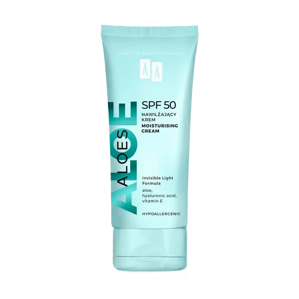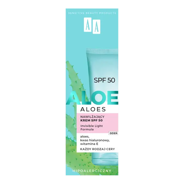 AA ALOE — это многофункциональная увлажняющая программа ухода для всех типов кожи, особенно для обезвоженной и чувствительной кожи, требующей успокоения и регенерации. УВЛАЖНЯЮЩИЙ КРЕМ SPF 50 предназначен для всех типов обезвоженной кожи, требующей регенерации и успокоения. Обеспечивает высококачественную защиту широкого спектра от UVA/UVB-излучения. Формула Invisible Light с суперлегкой консистенцией мгновенно впитывается, не отбеливая и не оставляя ощущения жирности на коже, и прекрасно сочетается с макияжем. Экстракт алоэ интенсивно увлажняет, смягчает и снимает раздражения. Гиалуроновая кислота усиливает увлажняющий эффект, а витамин Е оказывает антиоксидантное и питательное действие.