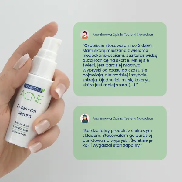86% тестировщиков подтвердили, что Novaclear Acne Pore Cleansing Serum уменьшил количество существующих недостатков, уменьшил видимость пор и отрегулировал секрецию кожного сала.