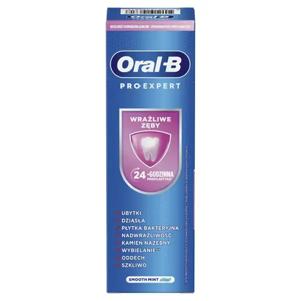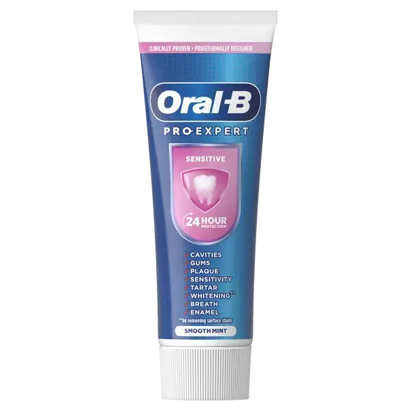 Зубная паста Oral-B Pro Expert Sensitive, разработанная профессионалами в сотрудничестве со стоматологами, доказала свою эффективность в ходе клинических испытаний. Помогает защитить от чувствительности и обеспечивает 24-часовую защиту от зубного налета при чистке зубов два раза в день.