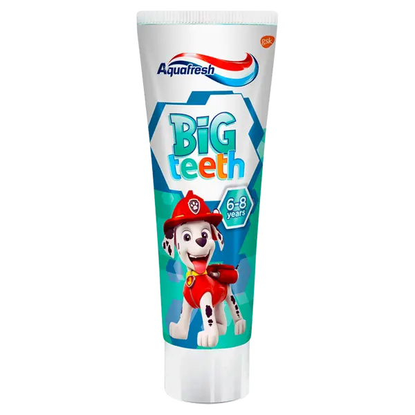 Aquafresh Big Teeth Paw Patrol — зубная паста, созданная специально для детей в возрасте от 6 лет, у которых происходит смена молочных зубов на постоянные. Продукт разработан для ухода за здоровыми и крепкими зубами у детей, которым в этот период требуется особое внимание. Паста делает прорезывающиеся постоянные зубы здоровыми и крепкими. Зубная паста Aquafresh Big Teeth Paw Patrol содержит специально разработанную формулу, тройную защиту — крепкие зубы, здоровые десны, свежее дыхание! Содержит активный фторид для укрепления эмали. Эффективно защищает зубы от кариеса и предотвращает образование зубного камня. Активные ингредиенты, содержащиеся в нем, помогают сохранить зубную эмаль здоровой и крепкой. Кроме того, зубная паста Aquafresh Big Teeth Paw Patrol имеет мятный вкус, который побуждает детей регулярно чистить зубы, и привлекательную упаковку в виде популярных персонажей мультфильма «Щенячий патруль», что превращает чистку зубов для детей в удовольствие. Aquafresh my Big Teeth — отличный способ обеспечить идеальную гигиену, которая сделает зубы вашего ребенка более здоровыми и крепкими!