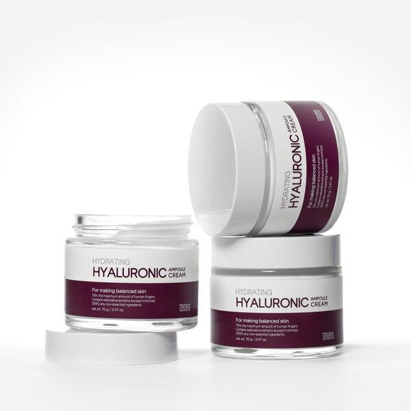 Крем для лица, усиленный увлажняющим эффектом ампулы гиалуроновой кислоты, которая помогает сделать кожу эластичной, придавая ей здоровый вид.