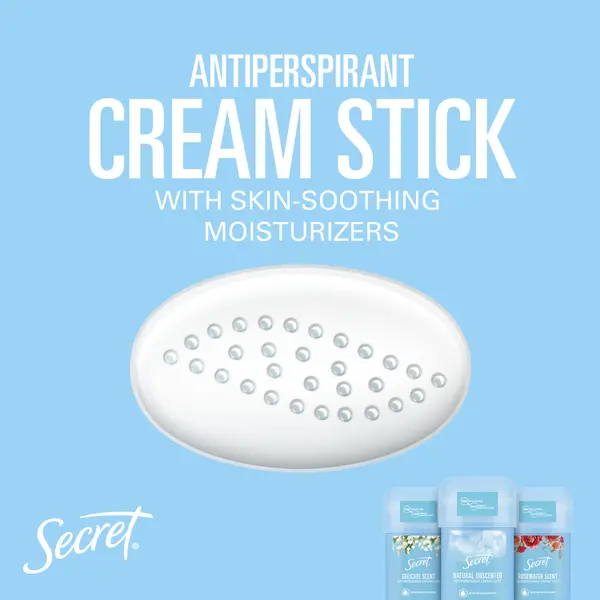 Коллекция Secret Fresh, обеспечивающая сбалансированный pH, обогащена увлажняющими компонентами, которые делают кожу гладкой. Более того, благодаря усовершенствованной технологии, прекрасный аромат будет окружать вас долгое время. Кремовый антиперспирант-карандаш Secret приятно сушит кожу, помогая устранить неприятные запахи и влажные пятна на 48 часов. Откройте для себя надежную свежесть с кремообразным стиком-антиперспирантом Secret. Это самая популярная марка женских дезодорантов в Соединенных Штатах.