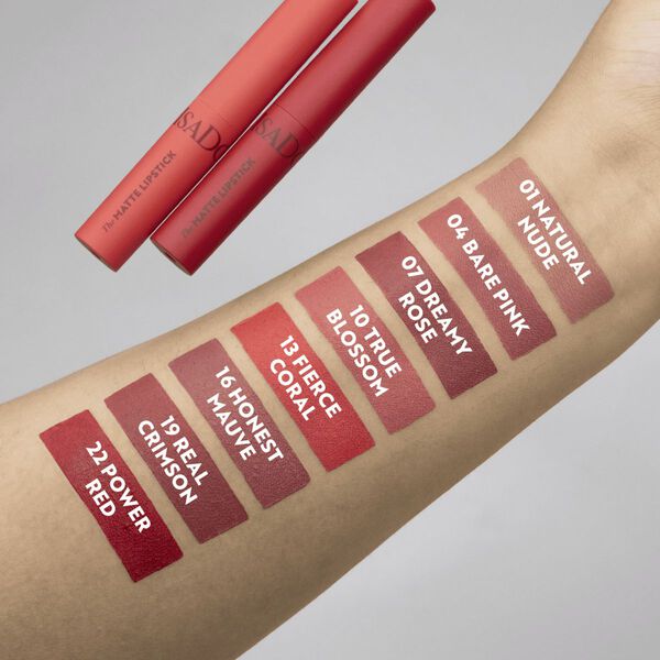 Матовая помада — интенсивный цвет и комфорт на весь день Откройте для себя матовую помаду — помаду, которая сочетает в себе бархатистое матовое покрытие и комфортное увлажнение. Его уникальная формула заполняет мелкие морщинки и складки, придавая губам более пухлый вид, обеспечивая при этом легкое нанесение и длительный эффект. Почему стоит выбрать именно его? Стойкая, мягкая матовость — идеальное покрытие на весь день. Увлажнение и защита — без ощущения сухости. Ультралегкая, комфортная формула — легко наносится, гладко скользит по губам. 100% веганский продукт, не тестируется на животных, не содержит отдушек и клинически протестировано. Без запаха. Проверено клинически.