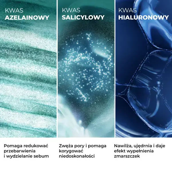 Гель-крем Effaclar AZ с революционным двойным действием: симптомы акне у взрослых и эффективность в борьбе со старением. ИННОВАЦИЯ: Уникальная формула с активными ингредиентами, рекомендованными дерматологами: азелаиновая кислота, салициловая кислота, гиалуроновая кислота для двойного действия: 1. При симптомах акне у взрослых: рецидивирующих пятнах от угревой сыпи и пигментных пятнах постакне. 2. Эффективность против старения. Предотвращает рецидивы. ПОКАЗАНИЯ: Для кожи с повторяющимися высыпаниями, пигментными пятнами от угревой сыпи и признаками старения кожи. РЕЗУЛЬТАТЫ: Борется с повторяющимися пятнами и пигментными пятнами от прыщей всего за 7 дней*. День за днем поры и стойкие следы от прыщей становятся менее заметными*. Ежедневно уменьшает морщины и делает кожу упругой**. Выравнивает текстуру кожи и возвращает ей сияние*. Результаты сохраняются в течение недели после прекращения использования продукта***. 8 часов увлажнения****. АКТИВНЫЕ КОМПОНЕНТЫ: Инновационная комбинация 3 кислот: - АЗЕЛАИНОВАЯ КИСЛОТА - оказывает отшелушивающее, противоугревое действие, способствует уменьшению пигментации и чрезмерного выделения кожного сала, защищает кожу от преждевременного старения. - САЛИЦИЛОВАЯ КИСЛОТА – очищает и сужает поры, помогает устранить стойкие недостатки. - ГИАЛУРОНОВАЯ КИСЛОТА – известна своим мощным увлажняющим и разглаживающим действием на кожу. Укрепляет кожу и помогает уменьшить появление мелких морщин и складок. А ЦИНК - уменьшает выработку кожного сала, обладает антибактериальными свойствами. Увлажняющая и сверхбыстро впитывающаяся гелево-кремовая текстура с бархатистым финишем. Идеальная основа под макияж. Гипоаллергенный. Подходит для чувствительной кожи. Некомедогенно (не вызывает появления черных точек). *Клиническое исследование с потребительским тестированием, 81 человек. **Клиническое исследование, 42 человека. ***Клиническое исследование, 81 человек. ****Инструментальный тест.