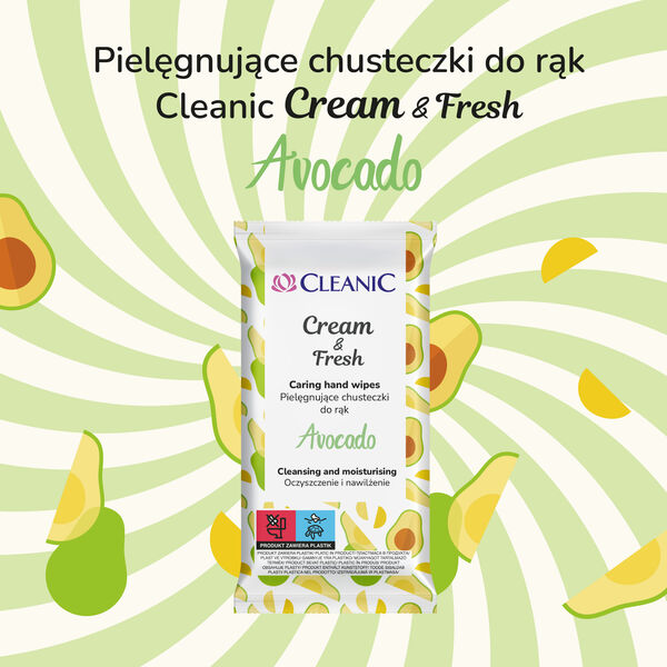 Салфетки для рук с ароматом авокадо, 15 шт./1 упаковка. Cleanic Cream&Fresh