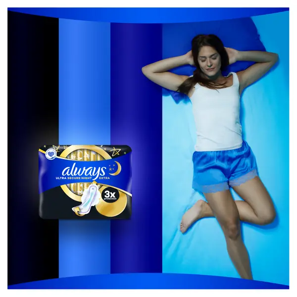 Гарантированно хороший ночной сон с гигиеническими прокладками ALWAYS Ultra Secure Night с крылышками (размер 4). Разработаны с учетом тройной защиты, поэтому вам не придется просыпаться, проверять наличие протечек и менять прокладку посреди ночи. На 60% больше спинка* в сочетании с технологией LeakGuard связывает влагу и помогает предотвратить протекания во время ночных кровотечений. Система InstantDry впитывает влагу за считанные секунды и не допускает ее попадания на кожу. Прокладки оснащены технологией OdourLock, которая нейтрализует неприятные запахи, позволяя вам чувствовать себя свежей и чистой. Спите спокойно с тройной защитой Always Ultra. Одобрено дерматологами Альянсом по здоровью кожи. Попробуйте Always Ultra Secure Night (размер 5) — лучшие прокладки Always для защиты в течение ночи. Найдите идеальный вариант для своего тела с Always My Fit — персонализированной системой размеров, которая поможет вам подобрать наилучшую защиту Always для вашего периода в зависимости от интенсивности менструации и размера нижнего белья, которое вы носите.