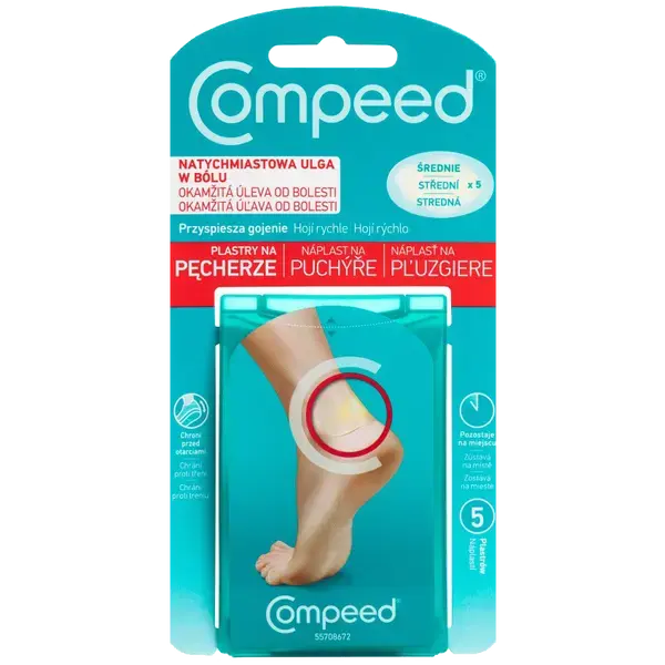 Пластырь Compeed Medium Blister Plaster впитывает излишнюю влагу и создает защитную подушку, обеспечивая немедленное облегчение боли и оптимальные условия заживления мозолей на ногах.
