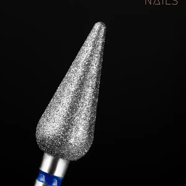 Алмазная грушевидная фреза для кутикулы. Головка фрезы имеет диаметр 5 мм и длину 12 мм, что обеспечивает точность при использовании, позволяя аккуратно обрабатывать кутикулу, не повреждая ее.