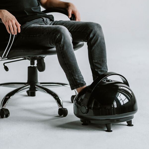 САМЫЙ СОВРЕМЕННЫЙ МАССАЖЕР ДЛЯ НОГ НА РЫНКЕ! Здоровье начинается с ног! Даже короткий сеанс с массажером для ног Pure Complet PRO позволит вам ощутить благотворное воздействие массажа. Массажер обладает самыми эффективными и современными формами массажа, которые мгновенно стимулируют ваши жизненные силы и придают вам энергию для действий. Две независимые камеры оказывают давление на все части стопы (лодыжки, подъемы, пальцы, своды и пятки), снимая напряжение в глубоких слоях мышц и стимулируя кровообращение.